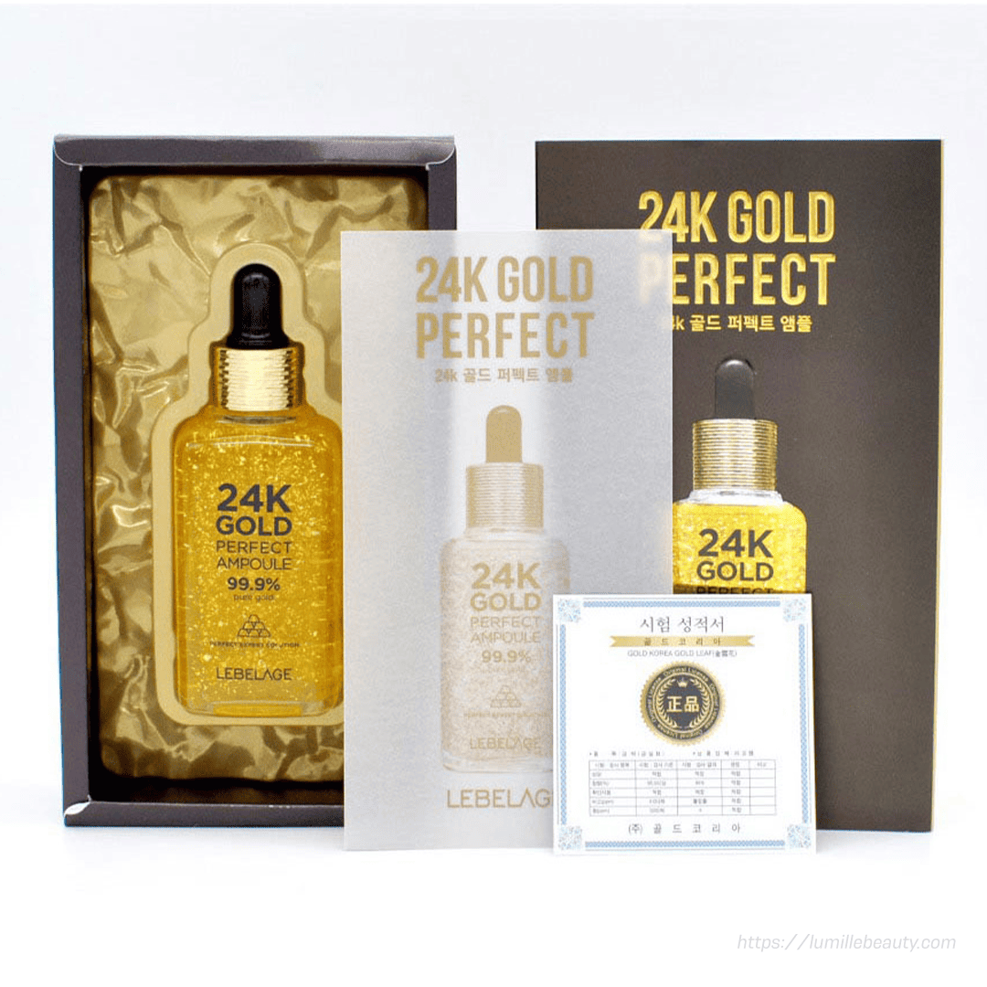 24K Gold Perfect Ampoule is a luxurious treatment designed to revitalize dull, tired-looking skin. Enriched with 24K gold, it helps enhance skin radiance, improve texture, and support a luminous complexion. The silky formula absorbs smoothly, delivering nourishment and leaving skin visibly brighter, refined, and healthy-looking.