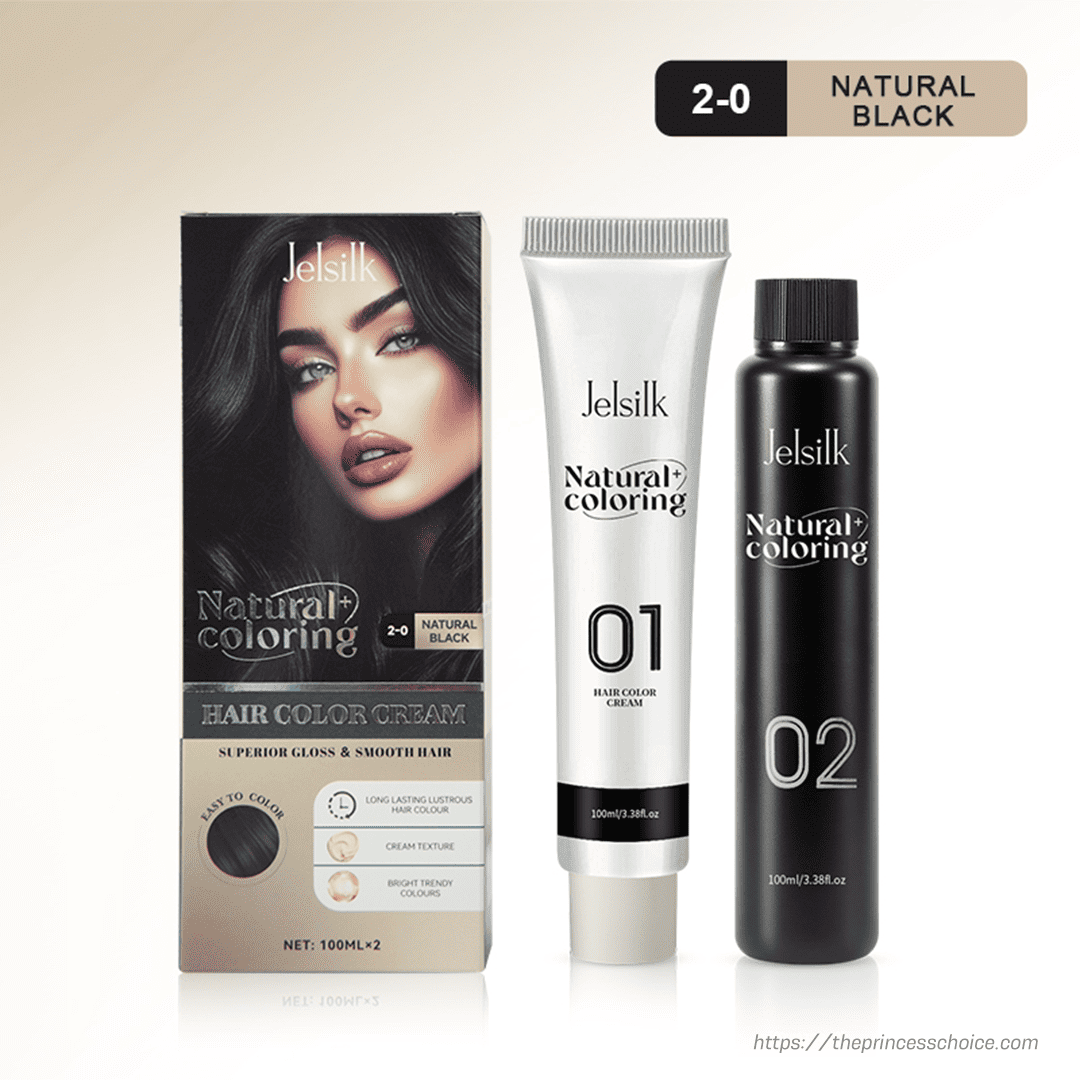 Natural Coloring Hair Color Cream – Natural Black provides an intense yet natural-looking black color. The creamy texture allows easy application and uniform color payoff, effectively covering gray hair while enhancing shine and smoothness for a polished finish.